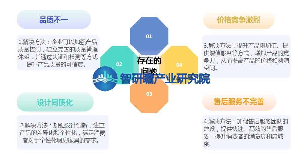 1. 品质不一:厨房家具市场存在一些质量不过关的产品,消费者在购买时难以辨别产品的质量。解决这个问题,企业可以加强产品质量控制,建立完善的质量管理体系,并通过认证和检测等方式提升产品质量的可信度。