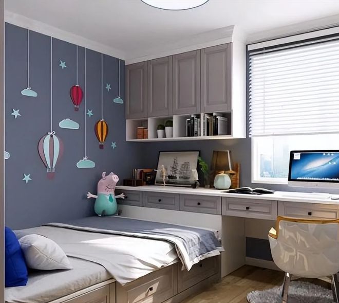 小型卧室强调整体协调性,年轻的房主倾向于创建具有多重用途的榻榻米床设计,该设计巧妙集成书桌、化妆台、衣橱等多项家具功能,形成立体分层的空间效果,实现一室多能,大幅节约家具购置成本,使得装修过程更为便捷高效。