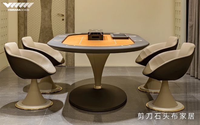 Asso牌桌橙、棕两色的搭配典雅中透出一丝活力,更贴心配备杯架和整套筹码。