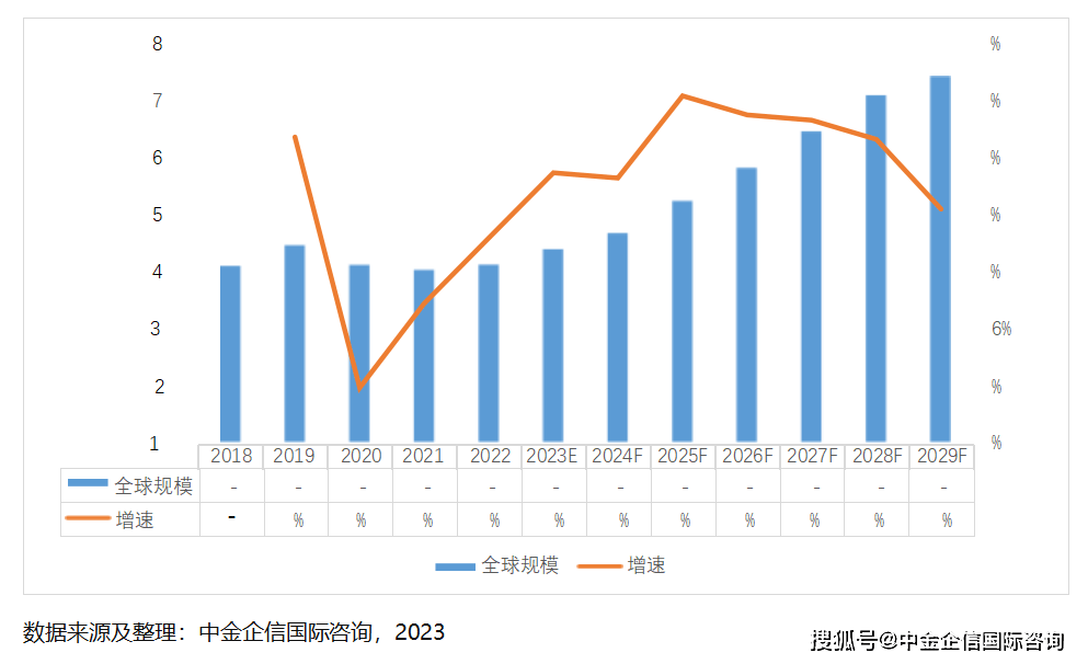 根据中金企信统计2022-2023年全球户外家具行业市场规模分别为 亿元与 亿元,预测到2030年全球户外家具行业市场规模为 亿元,同比增长 %。