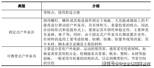 户外家具主要包括椅、凳、沙发、床榻、吊床、遮阳伞等,是人们拓展活动边界、调节生活情趣、陶冶情操、享受生活的重要工具,体现了人们对时尚休闲生活的追求,具有实用、舒适、安全、耐久、美观等特beat365中国在线体育平台征,应用场景主要包括庭院、阳台、阳光房、公园、广场、酒店、度假区以及餐厅等。