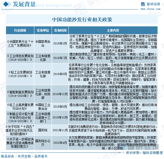 由智研咨询专家团队精心编制的《2023-2029年中国功能沙发行业市场竞争态势及未来趋势研判报告》(以下简称《报告》)重磅发布,《报告》旨在从国家经济及产业发展的战略入手,分析功能沙发行业未来的市场走向,挖掘功能沙发行业的发展潜力,预测功能沙发行业的发展前景,助力功能沙发行业的高质量发展。