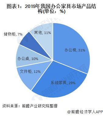 自上世纪90年代以来,办公家具产品得到了快速的发展,产品主要包括办公椅类、办公桌类、文件柜类、系统家具类(如屏风、桌屏系统、附件等)以及储物柜等。办公椅无论是在国内还是国外,始终处于办公家具的主导地位,我国办公椅市场份额约占整个办公家具市场的31%。