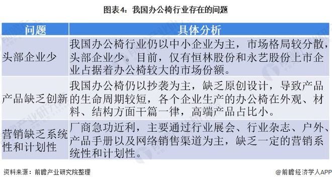 随着我国越来越多的办公族关注自身的健康,市场对舒适的办公椅需求持续增加,我国办公椅行业近年来得到了快速发展。但是,我国办公椅行业仍存在着一些问题,如我国办公椅行业仍以中小企业为主,市场格局较分散,头部企业少。目前,仅有恒林股份和永艺股份上市企业占据着办公椅较大的市场份额。在产品设计方面,我国办公椅仍以抄袭为主,缺乏原创设计,高端产品占比小。在营销方面,厂商急功近利,缺乏一定的系统性和计划性。