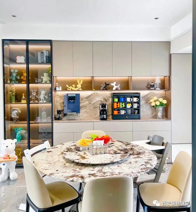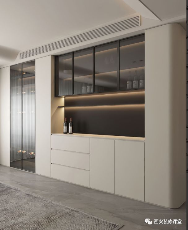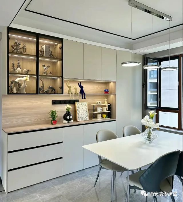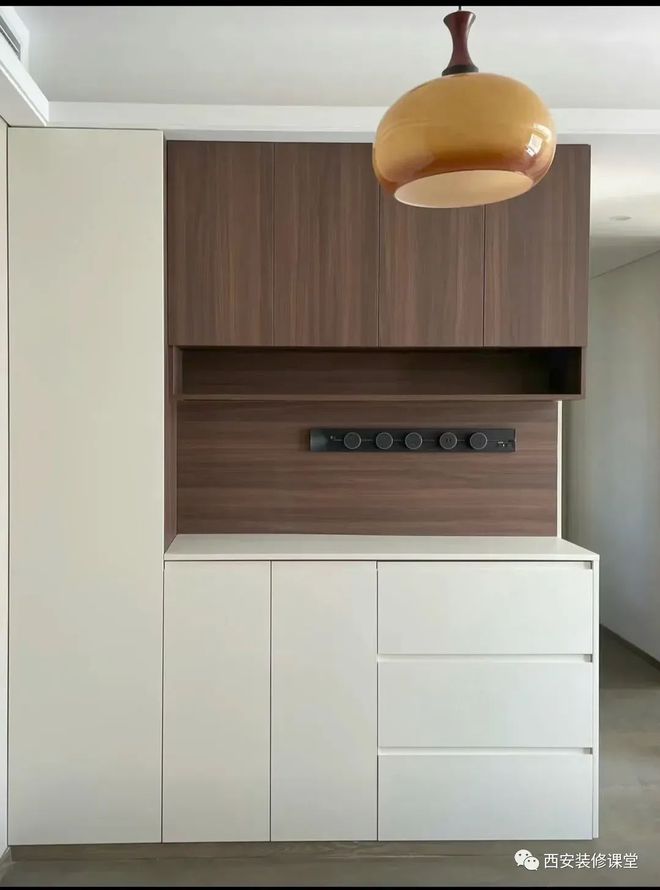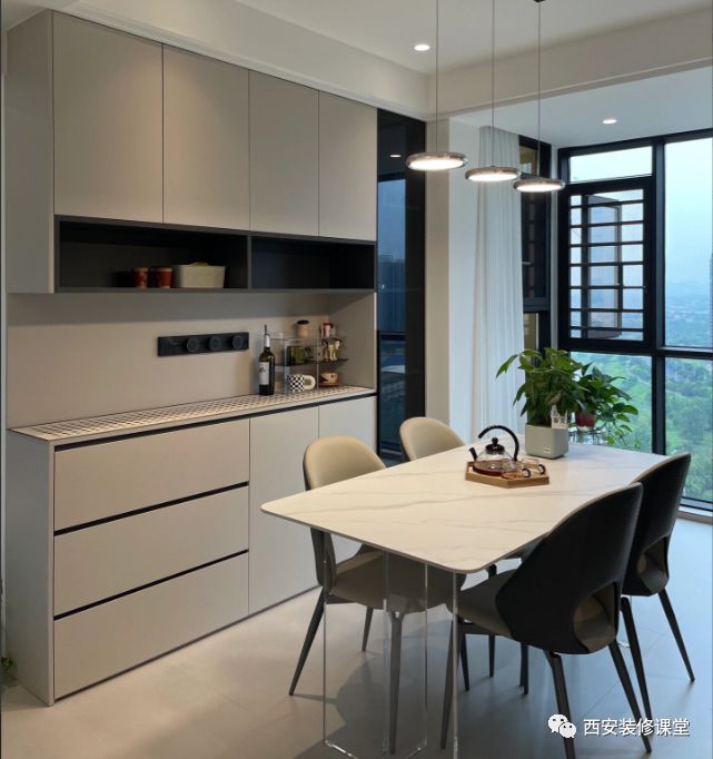 实大部分餐边柜定制,采用的都是三段式设计而已,只不过不是专业人士看不出来,或者只感觉好或者不好,至于是几段式设计,并没有那么多理论正确。