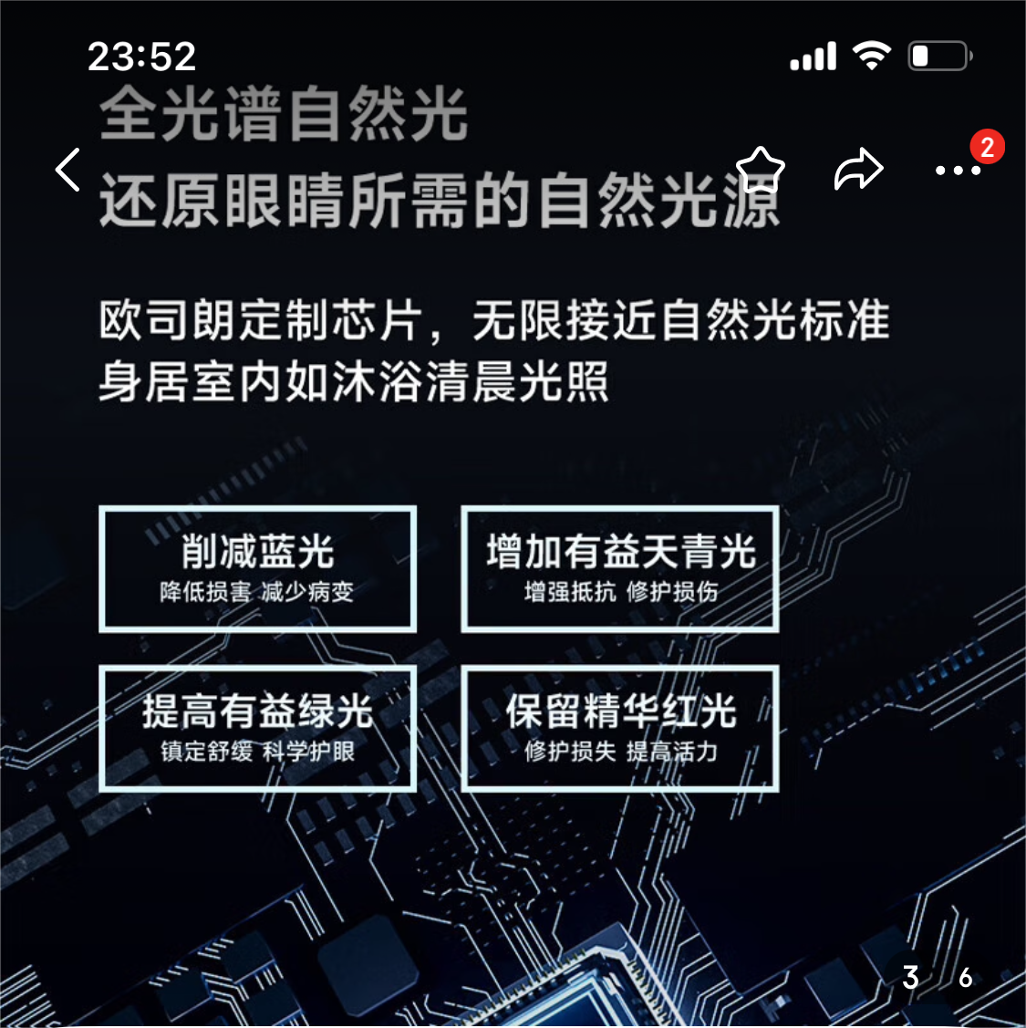 此外,有的“大路灯”宣称“全光谱自然光 还原眼睛所需的自然光源”“无限接近自然光标准,身居室内如沐浴清晨光照”,有的宣称“教育照明领导者 好光无忧”“行业首创非对称出光角,漫反射更充分,全屋均匀不累眼”,有的宣称“独创SunPath多维漫射技术,大大提升自然光学效应,使光线呈现更为明亮柔和”,各种说法不一而足。