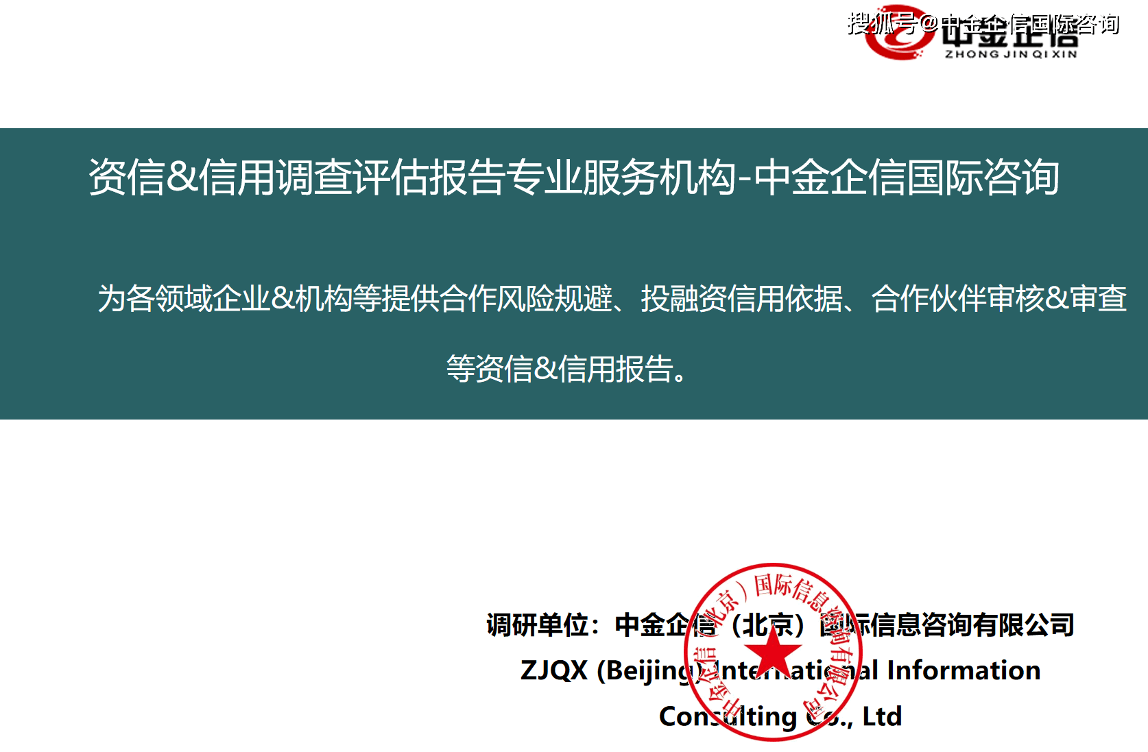 1)中金企信国际咨询(全称:中金企信(北京)国际信息咨询有限公司)为国家统计局涉外调查许可单位&AAA企业信用认证机构,致力于“为企业战略决策提供行业认证&证明、产品认证&证明、资信&信用调查评估、项目可行性&商业计划书专业解决方案”的专业咨询顾问机构。