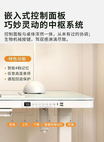 第二,达宝利DZ200智能升降学习桌嵌入控制面板,数字显示桌面高度,智能4档记忆,任意高度悬停。学生设置好坐姿学习的高度和站姿学习的高度,两者切换仅需一键一秒,坐站姿学习无缝切换,不影响学习状态。