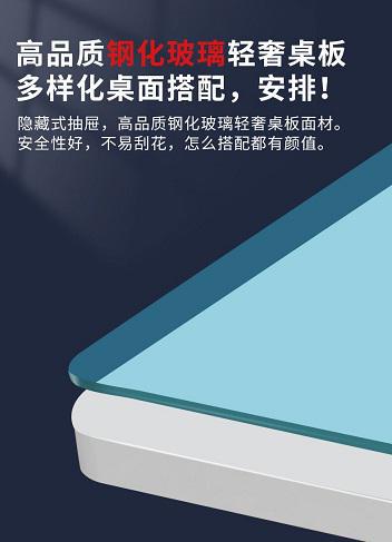 第四,达宝利DZ200智能升降学习桌使用高品质钢化玻璃轻奢桌板,不易刮花,易清洁。避免了传统学习桌实木桌面不易打理的弊端。