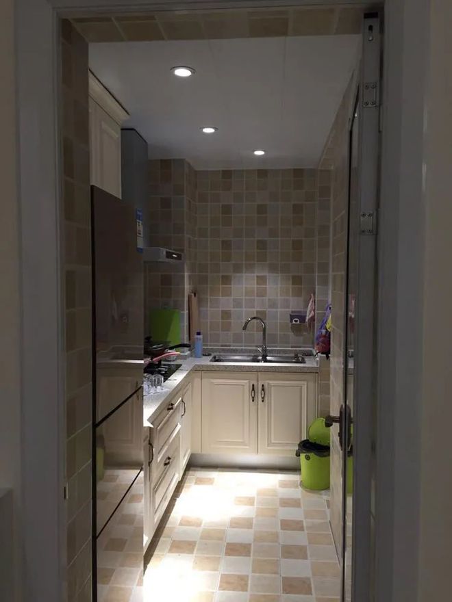 这是一个呈一字型布局的狭长厨房,尽管空间略显紧凑,但巧妙地采用了L型橱柜设计,有效利用了每一寸空间,展现出实用与美观的完美结合。
