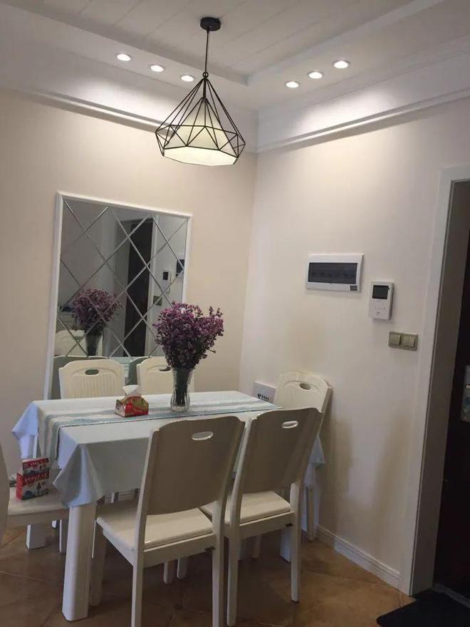 门口处的餐厅设计别具一格,墙面巧妙融入了镜面装饰,既拓宽了视觉空间,又增添了现代感。吊顶设计也是我精心挑选的,简约而不失格调,整体效果相当不错。