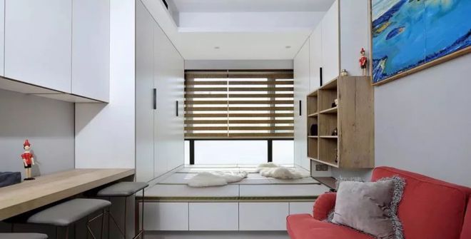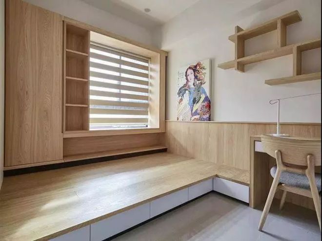 例如,在榻榻米下方可以精心设计成宽敞的储物空间,用以整齐地存放平时较少使用的换季衣物、被子等物品。这样的布局不仅让小卧室的功能得到倍增,同时也提升了整体空间的实用性和美观度。