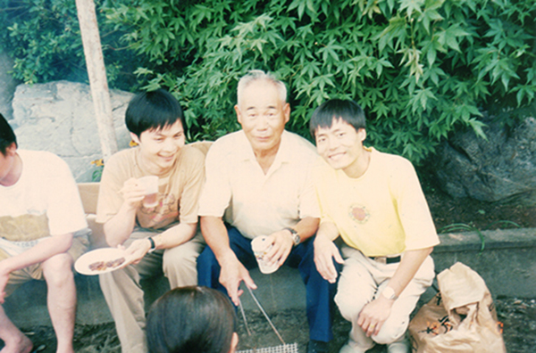 1997年日本九州大学留学期间王逸平(右一)和宣利江(左一)一起参加中国留学生和日本居民的交流活动。中国科学院上海药物研究所 供图
