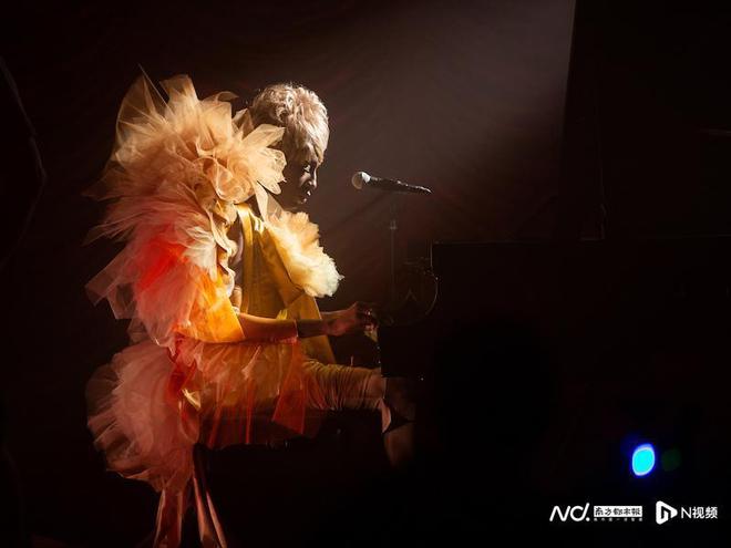 曾吴的作品《卡门速写(迷恋)》探讨了屏风的表演性质以及将屏风视为象征性界限或情感边界的概念。伦敦制作人、DJ和创作歌手Ms. Carrie Stacks进行表演的视频被投射在类似帷幕的装置上。视频中,表演者穿着华丽的金色礼服,一边弹奏钢琴,一边演唱她2017年发表的迷你专辑《五首忧伤的歌》中的两首歌曲《我得振作起来》和《把握时机》。