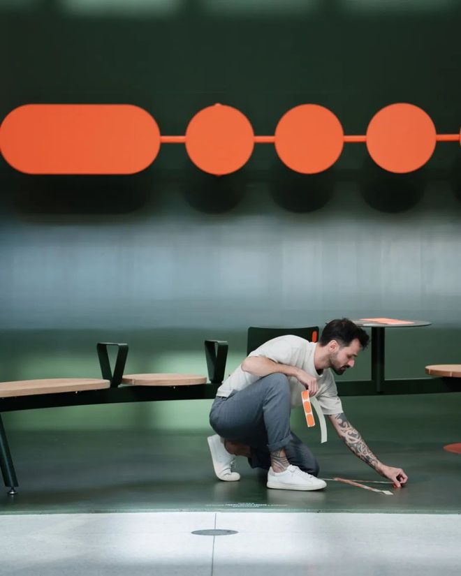 摩尔斯电码,在公共空间栩栩如生。带有短停留的长信号沿着周围环境的选定路径无缝流过其环境。