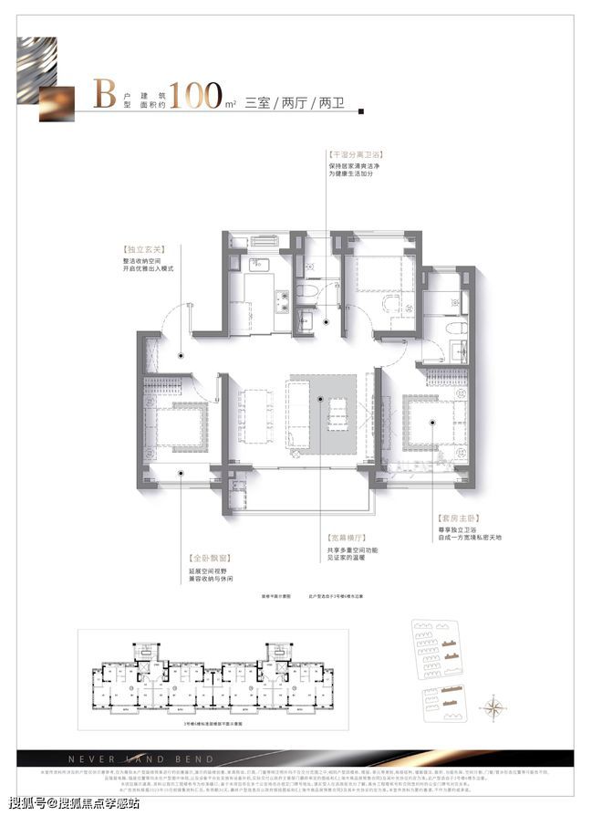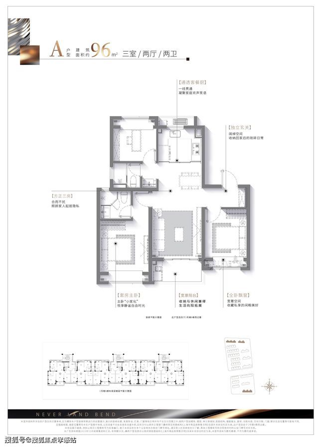 招商云澜湾售楼处预约电话,请拨打【预约☎】√√√而建面约100㎡的三房两厅两卫户型,可以说是约96㎡3房的升级版,空间更加延展,整体横厅面宽约5.2米(轴中距),形成更大的南向采光面,且搭配南向观景阳台,直接做到了3.5面宽朝南,这在同类产品中是比较少见的。